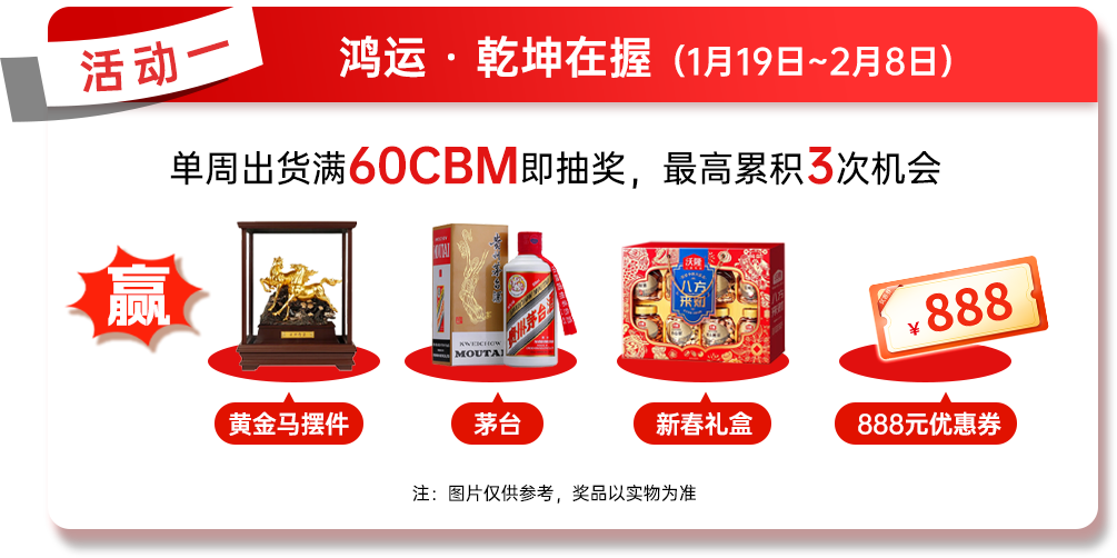 单周出货 60cbm ,即有机会赢茅台/黄金